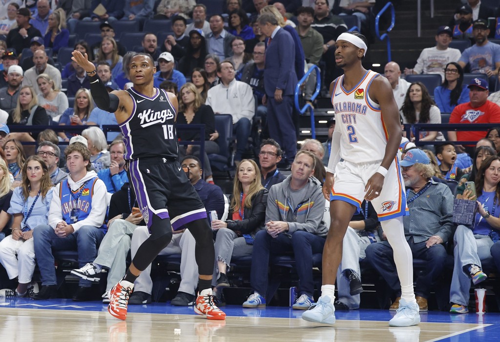 雷霆二当家杰伦-威廉姆斯、三当家切特-霍姆格伦全部缺阵,亚历山大单核带队,理论上国王的纸面实力远在雷霆残阵之上。