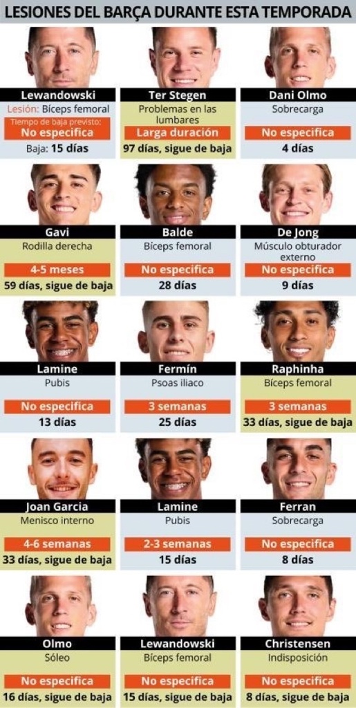 而此前,巴尔德、德容、亚马尔、费尔明、费兰也伤病不断,其中多人近期才伤愈复出。