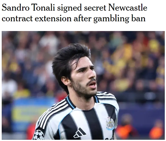 10月22日讯 据TA报道,在托纳利因赌博被禁赛期间,纽卡与他达成了一项秘密协议,将其原定于2028年的合同延长一年,俱乐部另有单方面决定与其再续约一年,至2030年的选项。